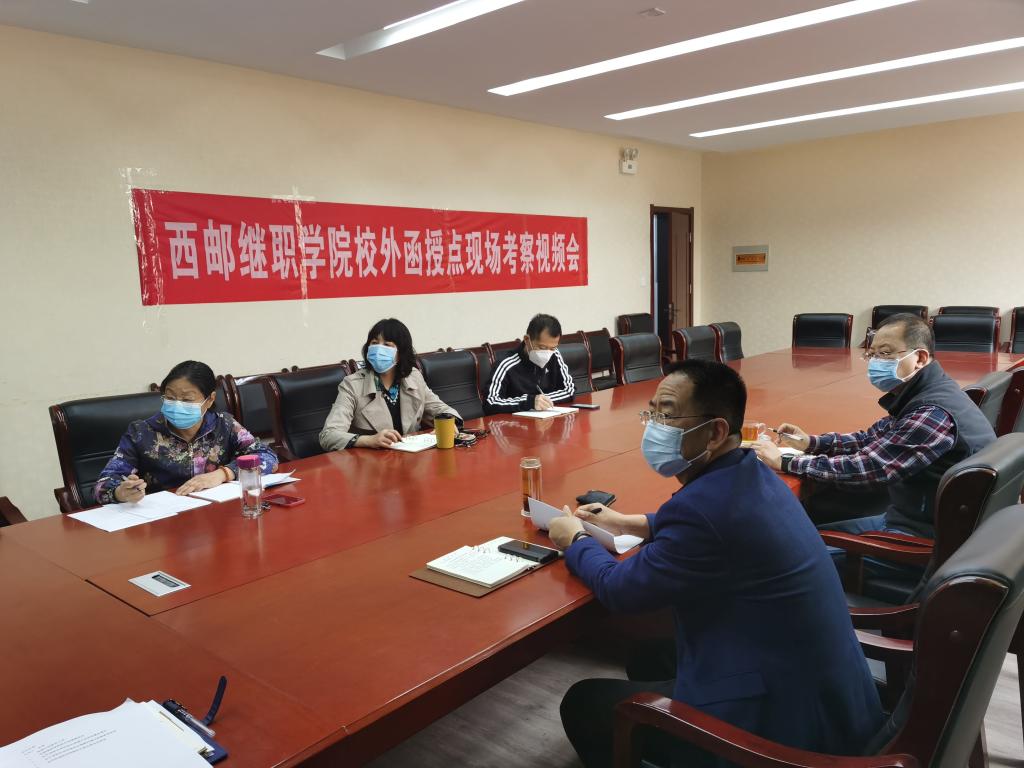 会上张继荣院长首先介绍了我院基本情况以及校外站点合作的要求,郑州平原邮专校长李娟介绍了平原邮专的基本概况及开展业务的情况;双方就招生、教学环节、学费收缴等问题进行了深入的探讨。由于疫情的影响,平原邮专常务副校长梅群柱通过手机视频直播的方式,带领大家参观了学校的办公环境、教学场所等设施,洽谈气氛深入、和谐而热烈。
